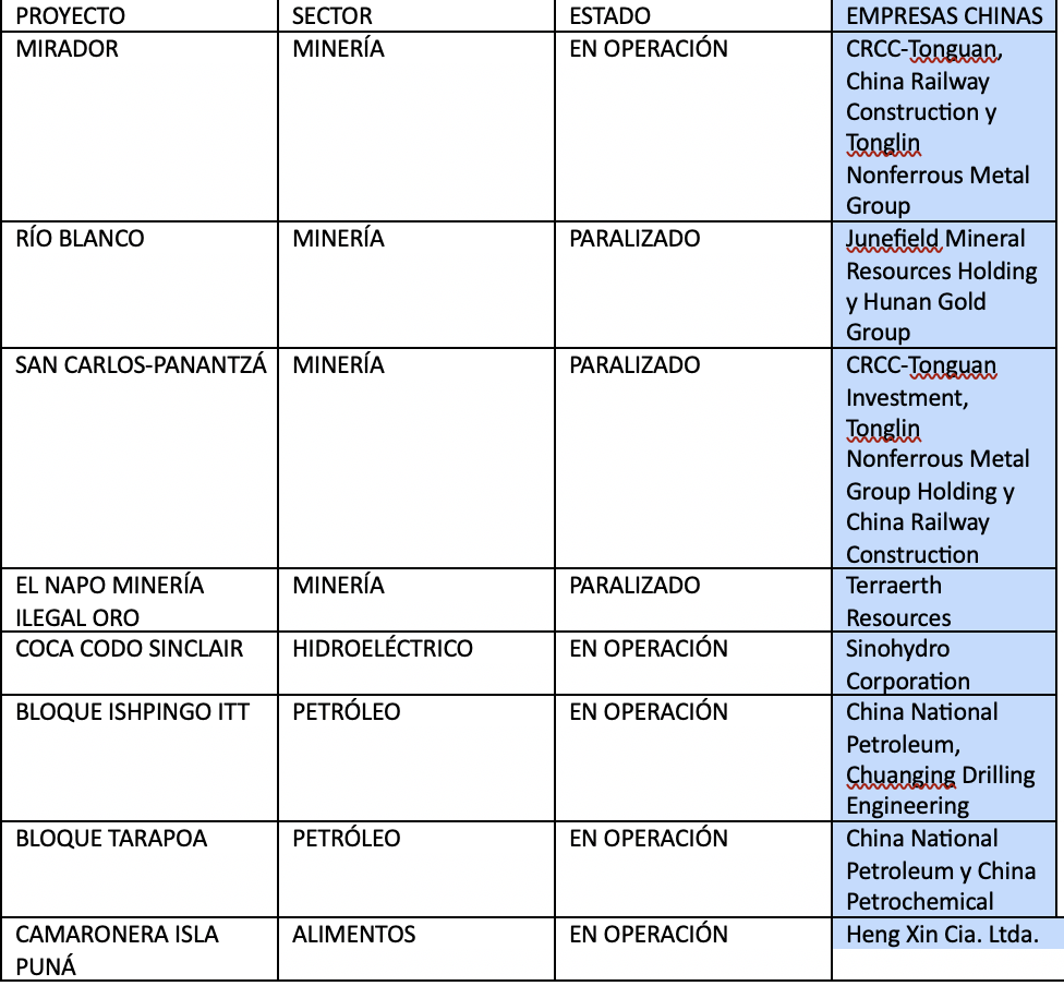 EMPRESAS CHINAS SEÑALADAS EN ECUADOR