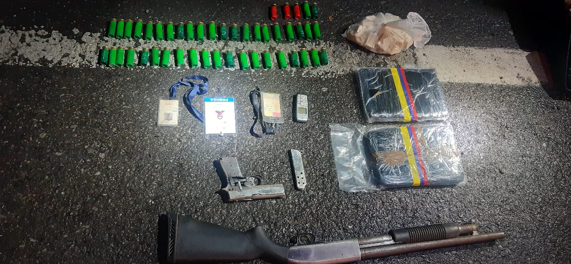 En la operación fue capturado un vehículo Spark negro, de placas GRY7921, de propiedad de José Chimbolema, policía en servicio activo. Dentro del auto se encontraron bombas de alto impacto, armas y droga.