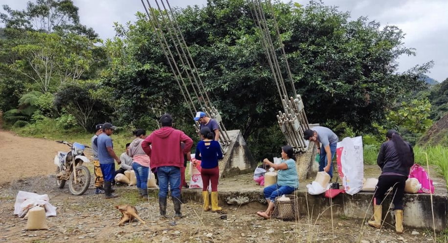 Representantes de la empresa china Expocobres, a cargo del proyecto Carlos Panantza, también realizan trabajos de apoyo y acercamiento a la comunidad, entregando víveres y vituallas. Foto cortesía Cámara de Minería.