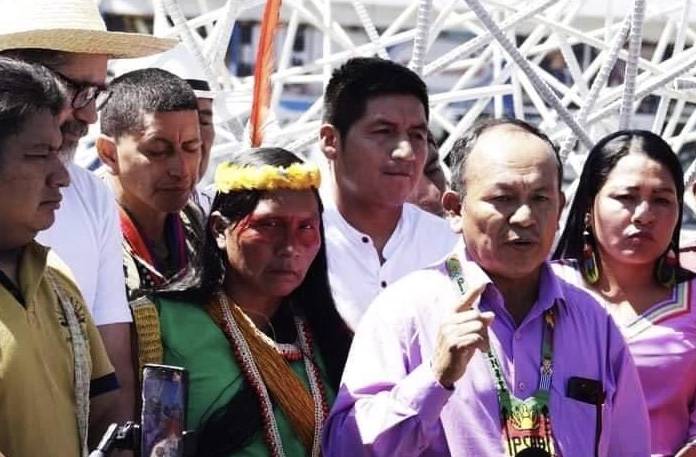 El 13 de junio pasado, Jaime Palomino, presidente del pueblo Shuar Arutam, participó en Quito en la entrega del Mandato por la Defensa de la Vida, el Agua y la Naturaleza. Es una iniciativa contra la minería.