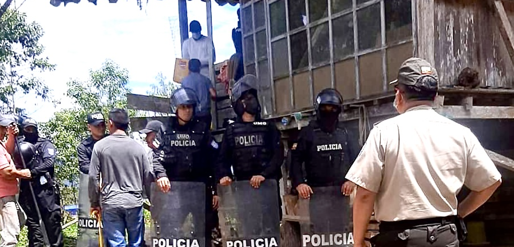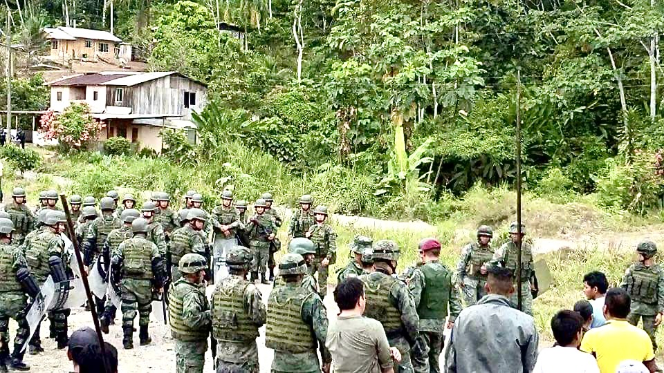 En diciembre de 2016, decenas de militares ingresaron a la parroquia Panantza y detuvieron a varios habitantes, que se oponían a la actividad minera. Foto cortesía Inredh
