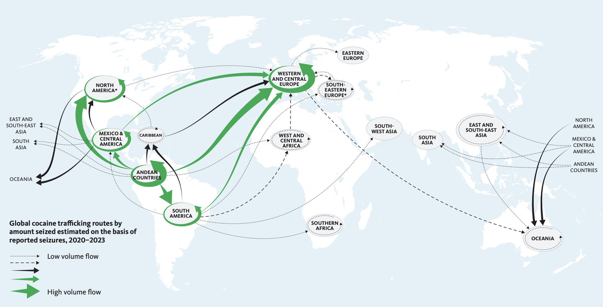 Flujos de envíos de cocaína a escala global