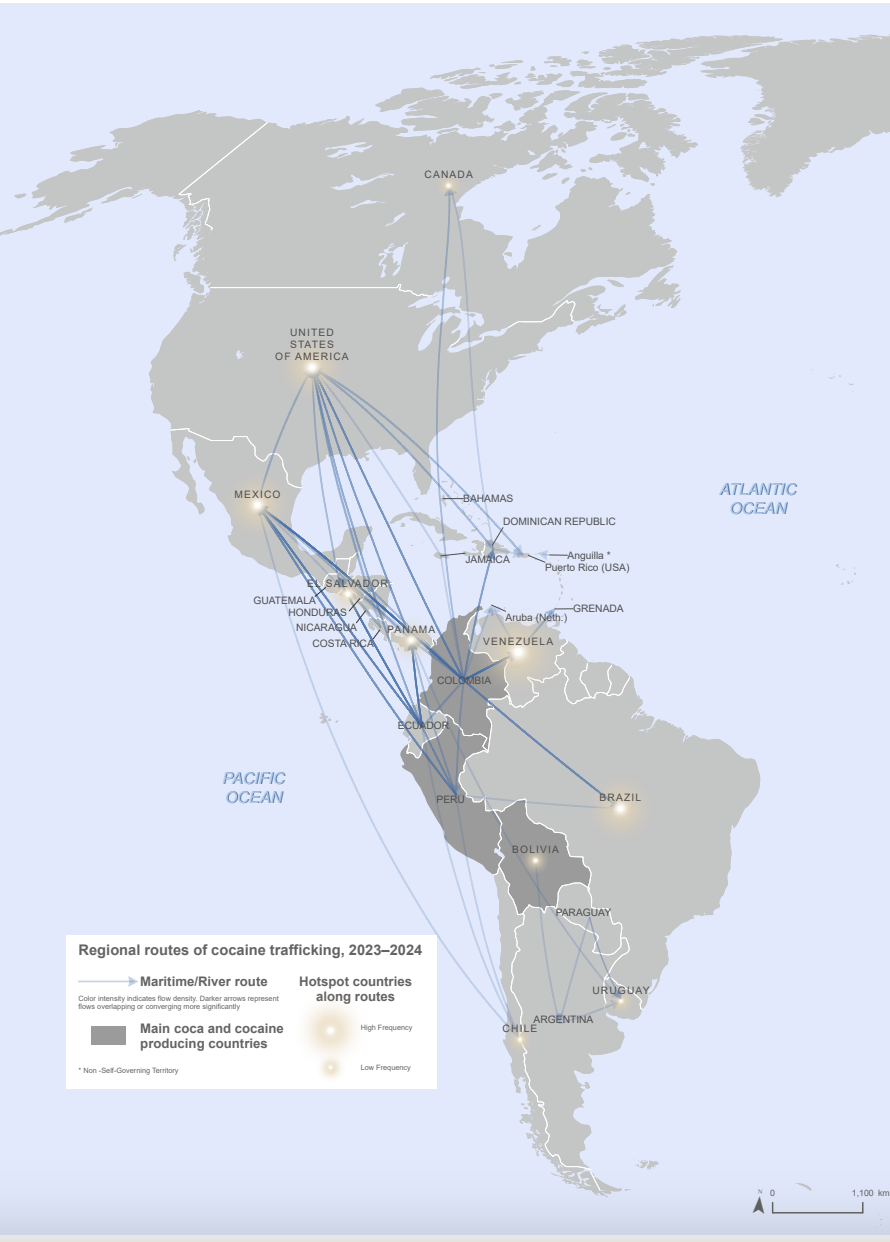 Tráfico de cocaína en el continente americano. Fuente: Informe UNODC