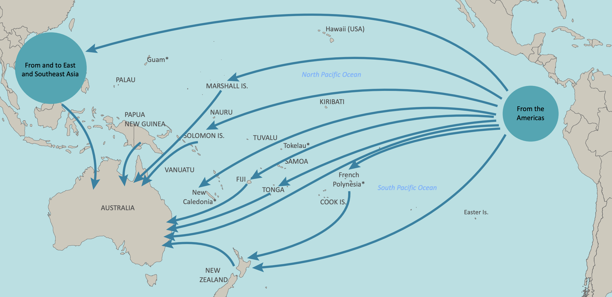 Las rutas del narcotráfico de cocaína desde América hacia Australia y Asia