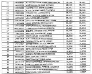 El puntaje más alto fue para Willian Fabian Calle Silva, que obtuvo la primera antigüedad, seguido por Diego Gonzalez Peñaherrera y Nelson Almendáriz Sánchez.