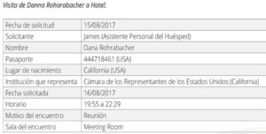 REGISTROS DEL INGRESO DE ROHRABACHER A LA EMBAJADA