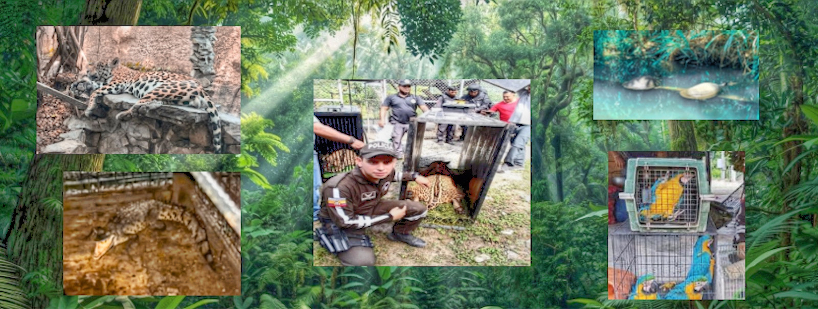 Entre 2023 y mediados de 2025, 14 ejemplares de animales nativos y exóticos fueron incautados en operativos y allanamientos a las estructuras criminales, según el Ministerio de Ambiente, Agua y Transición Ecológica (MAATE), en respuesta a un pedido de información de este proyecto. Varias de las especies decomisadas se encuentra en peligro de extinción y hacen parte de la Lista Roja de Especies nacionales e internacionales de la Unión Internacional para la Conservación de la Naturaleza (UICN), según ese ministerio. Varios están protegidos por la Convención sobre el Comercio Internacional de Especies Amenazadas de Fauna y Flora Silvestres, CITES.