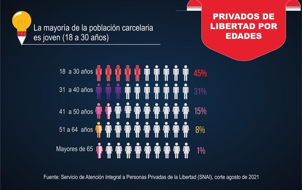 La mayoría de detenidos es joven. El 45% de prisioneros oscila entre los 18 y 30 años. La segunda población más numerosa va entre los 31 y 40 años. Comprende el 31% de los presos (agosto 2021).