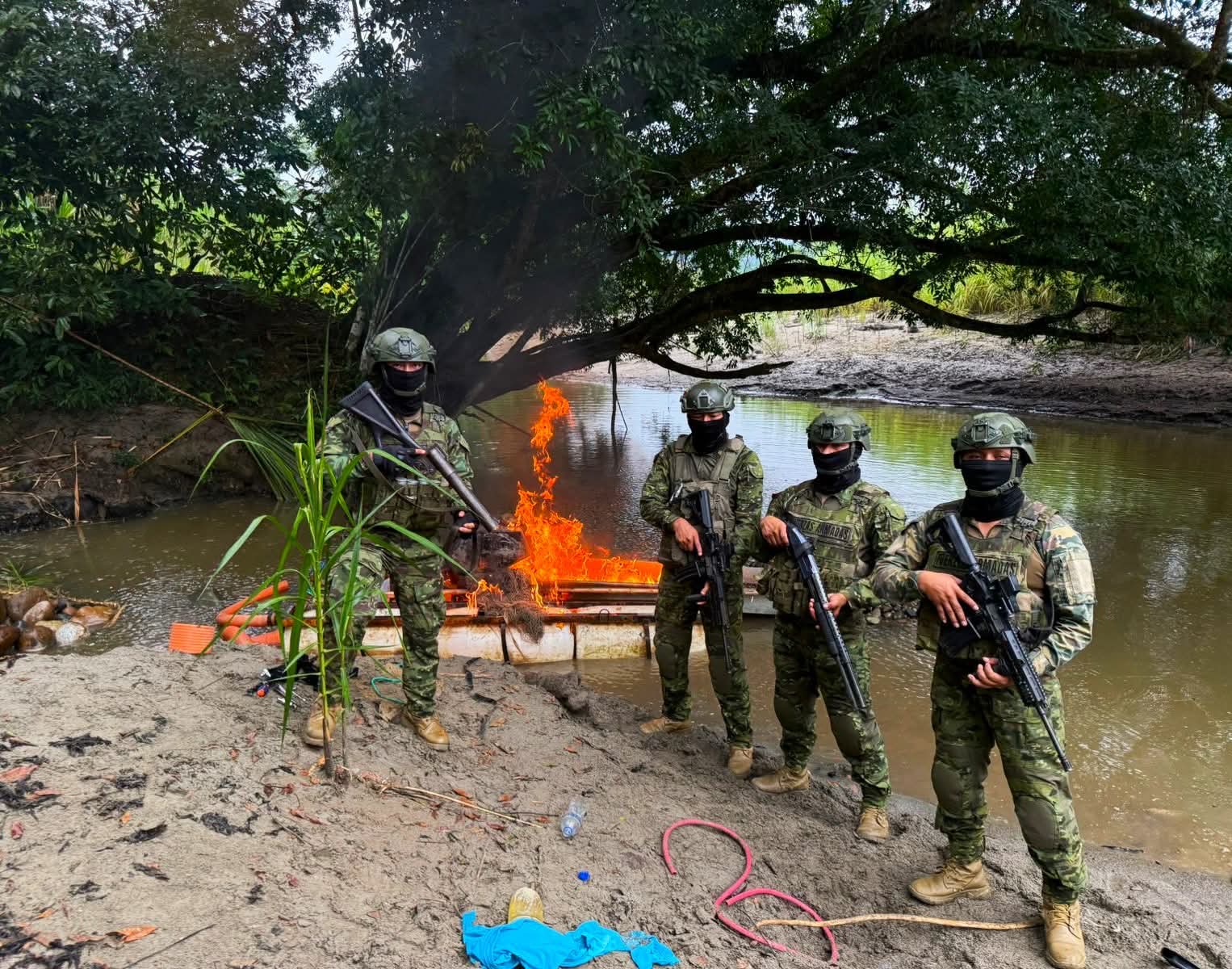 Pese a la suspensión de las actividades mineras, personal de Fuerzas Armadas sigue detectando actividades de minería ilegal en Napo. Foto cortesía