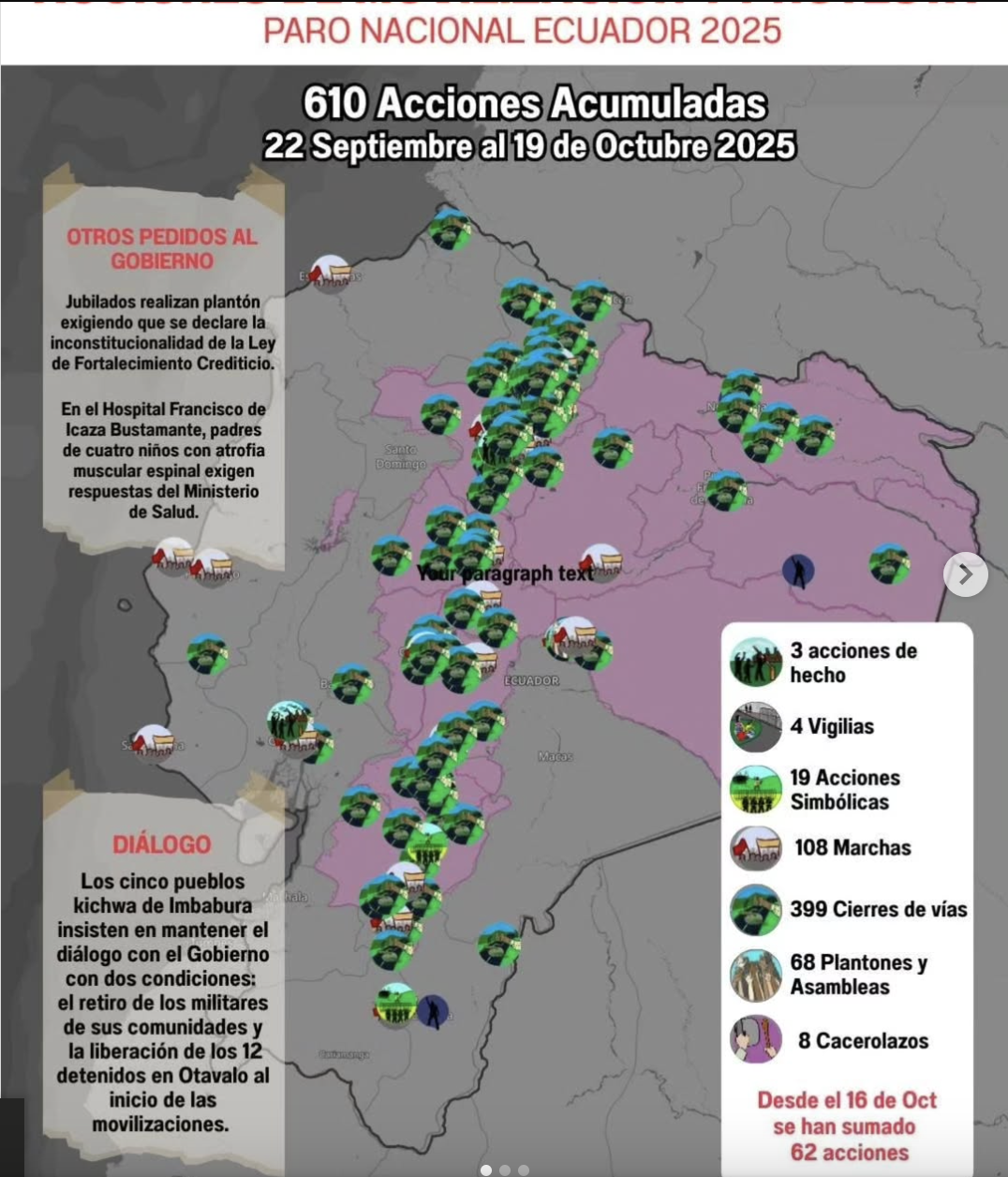 “El despliegue de fuerzas militares para contener la protesta social, acompañado de discursos como amenazas a la seguridad es desproporcionado y es una deriva peligrosa y represiva”, dijo Ana María Palacios, investigadora para las Américas del CIVICUS Monitor. “Este enfoque criminaliza a la sociedad civil y legitima la violencia contra comunidades que defienden sus derechos”.
