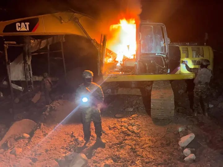 Para estas actividades se habrían utilizado excavadoras, clasificadoras tipo “Z”, motobombas, motores de succión, dragas artesanales, generadores eléctricos y tanques de combustible.