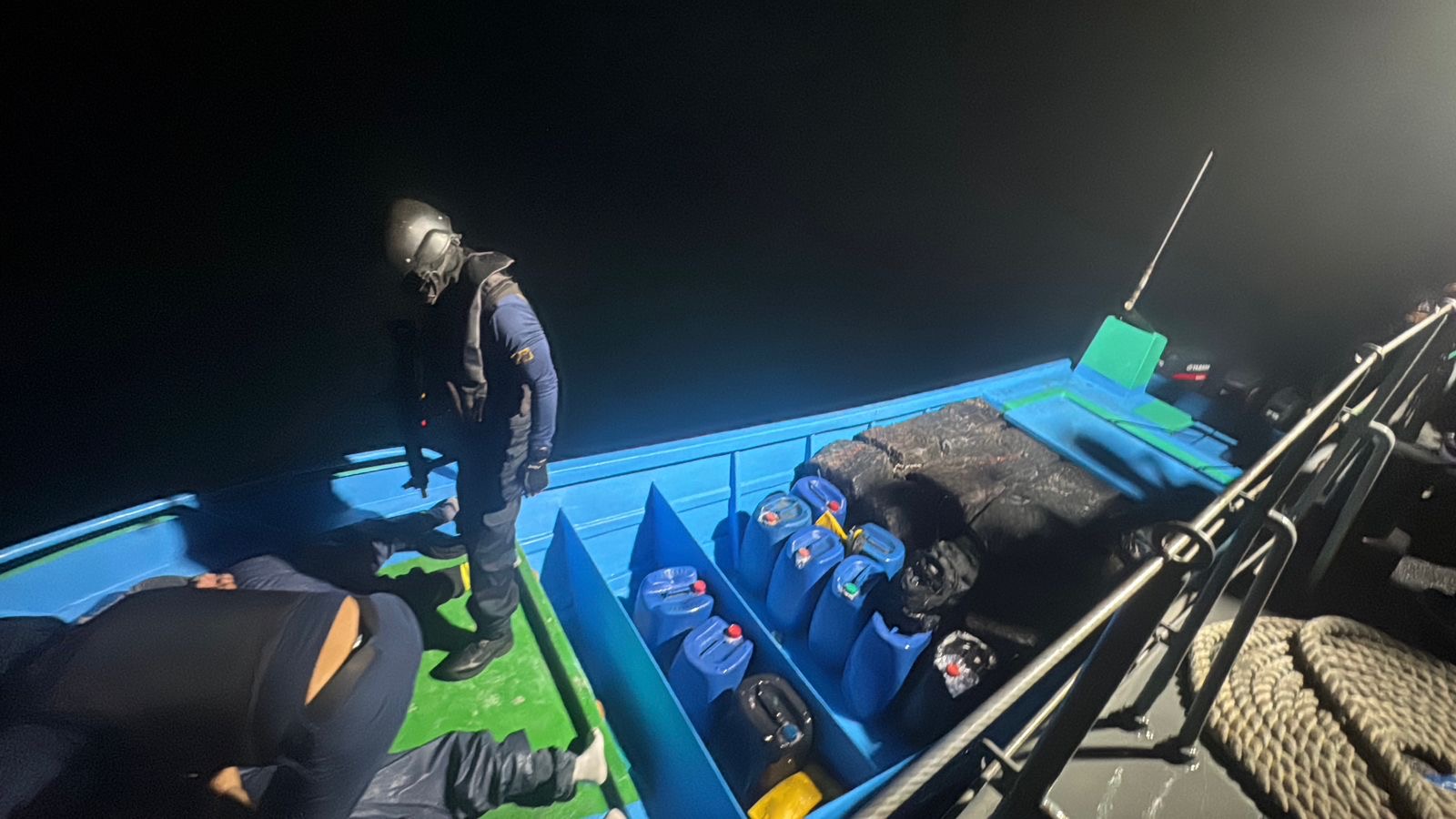 Por información de inteligencia militar, las Fuerzas Armadas capturaron una lancha de fibra con 1,8 toneladas de cocaína en las costas de Manabí, a 69 millas náuticas de Manta, este miércoles primero de abril.
