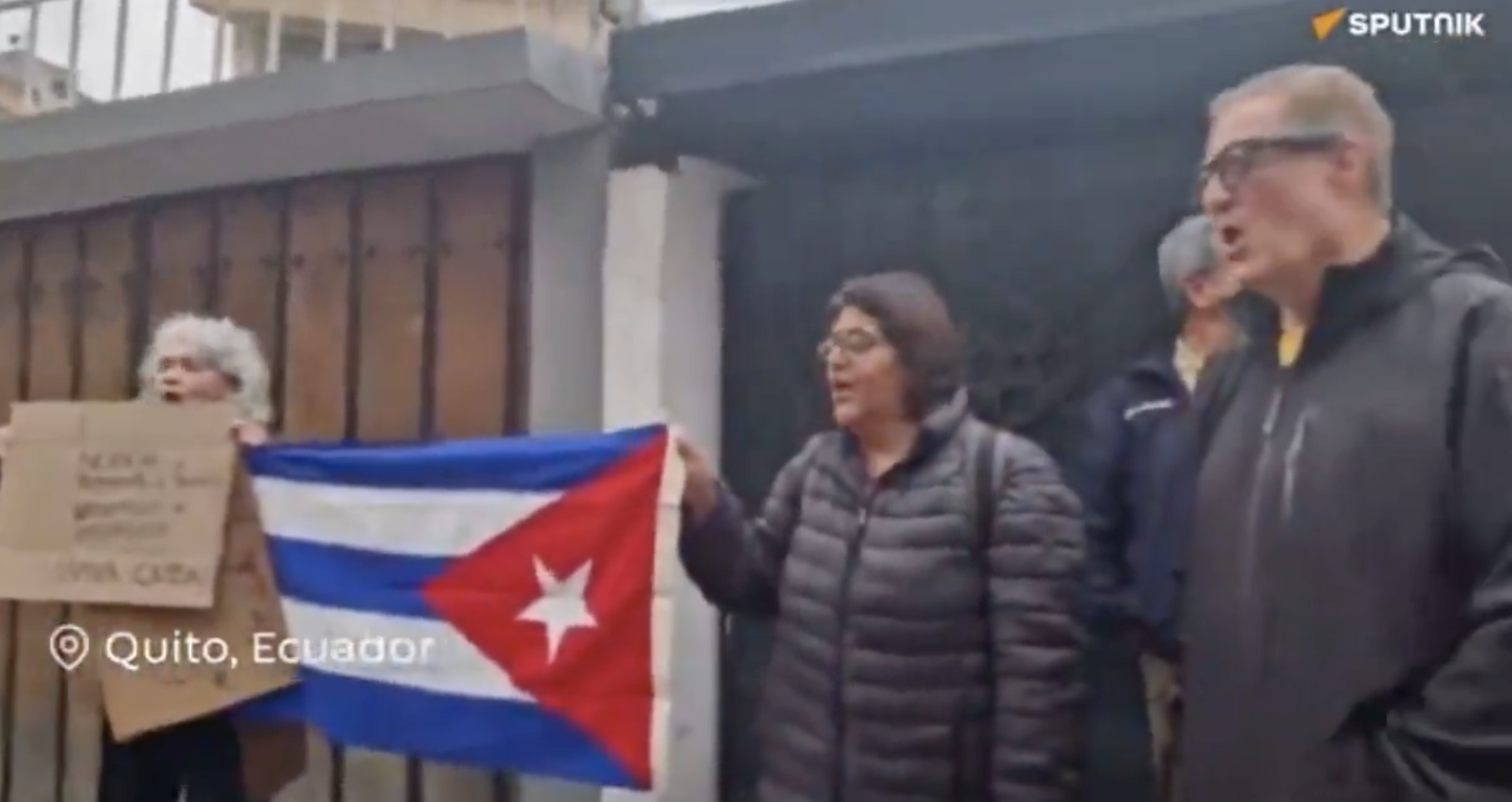 Pasadas las 17:00, militantes del Partido Comunista Ecuatoriano (PCE) y simpatizantes del régimen cubano se concentraron en las afueras de la embajada ondeando banderas rojas y flores. Los manifestantes expresaron su preocupación por la decisión del Gobierno de solicitar la salida de la misión diplomática caribeña. Entre quienes protestaban estuvo la exembajadora de Ecuador en Cuba durante el gobierno de Lenín Moreno, María Augusta Calle y exasambleísta constituyente en 2008. Ella expresó su rechazo a la decisión del presidente Noboa de expulsar al personal diplomático cubano del país.