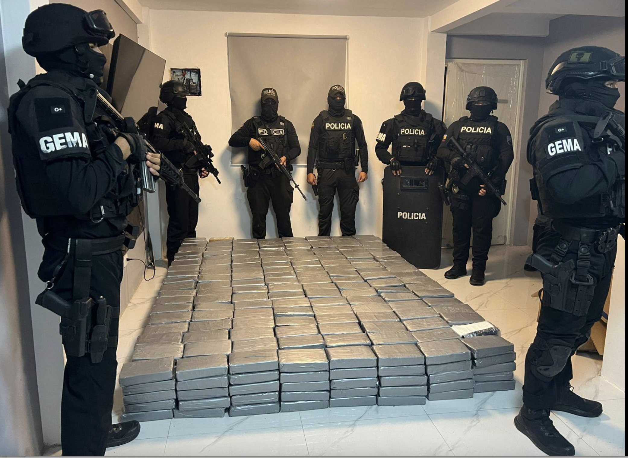 En septiembre de 2025 la Policía realizó allanamientos y capturas en varias provincias. En Guayas (Durán), se incautó de 730 paquetes de cocaína (730 kilos), un fusil, una pistola, radios de comunicación, municiones y elementos vinculados a la seguridad de las operaciones ilícitas.