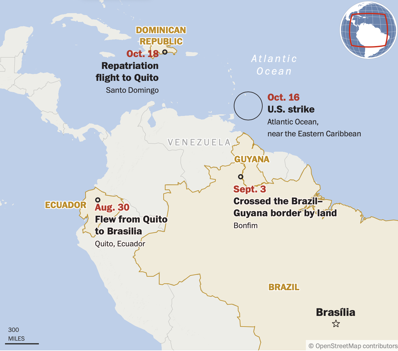 Dos pescadores ecuatorianos constaban entre los cinco detenidos. Su registro migratorio mostraba una conducta inusual. Ambos habían arribado por vía aérea desde México, Guatemala y El Salvador, en varias ocasiones desde 2016. Sin embargo, no hay registros de que salieran por avión desde suelo ecuatoriano. Al parecer, su desplazamiento seguía un patrón: salían desde las costas de la provincia de Manabí, con cargamentos ilegales que entregaban en altamar. Dejaban las embarcaciones abandonadas. Luego, volvían en vuelos comerciales a su país de origen.