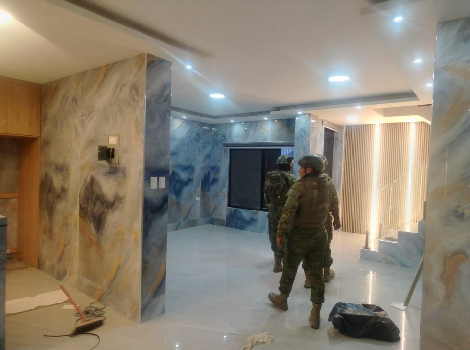 Videos difundidos por el Ministerio de Defensa y el Ejército mostraron a militares metiéndose en un agujero en un piso de baldosas para llegar al sótano oculto e inacabado que se encuentra debajo. Otros videos mostraron a los agentes sujetando a Macías en el suelo, boca abajo, con las manos atadas a la espalda.