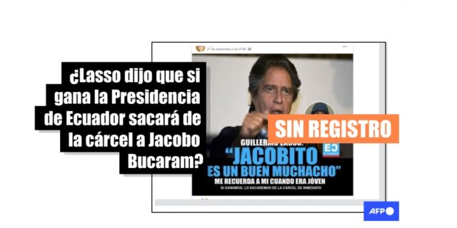 Otro aspirante a la Presidencia que aparece en esa lista es Guillermo Lasso, quien representa a la alianza de CREO y el Partido Social Cristiano. El equipo de verificación de AFP indicó que era falso que hubiera prometido liberar a Abdalá Bucaram y sus hijos de las investigaciones penales que se tramitan en su contra.